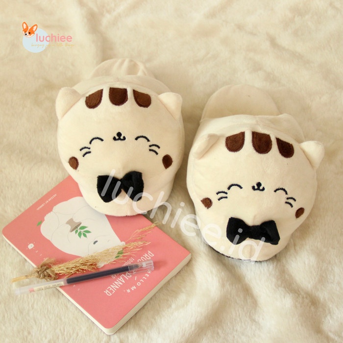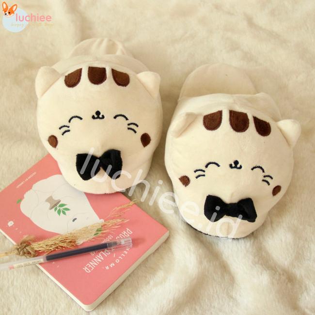 - SANDAL KAMAR TIDUR/RUMAH/INDOOR BONEKA CAT KUCING ANAK DEWASA LUCU SNI - Cream