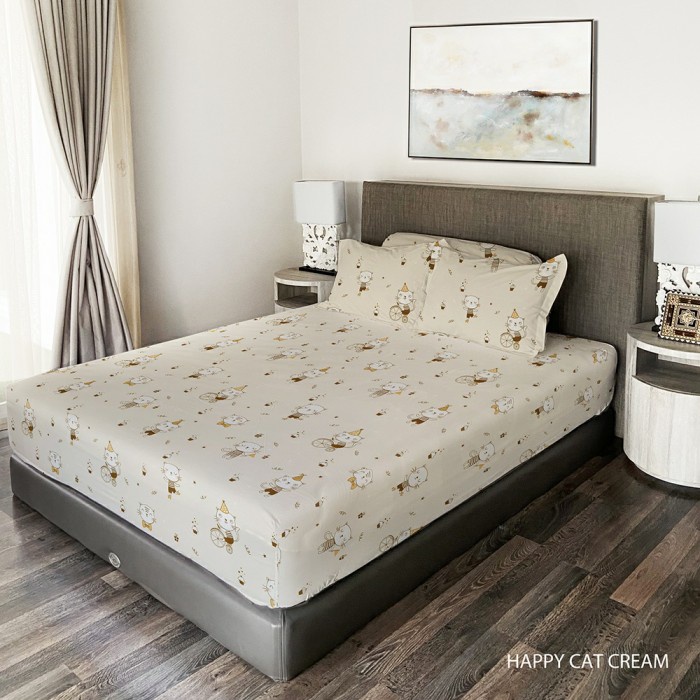 - [READY] ⭐⭐King Rabbit Sprei King Uk. 180X200 Cm Motif Bamboo Happy Cat Cream⭐⭐Perlengkapan Rumah Tangga / Aksesoris Kamar Tidur Jaring Kelambu / Bedroom Mosquito Net / Kelambu Murah DISKON