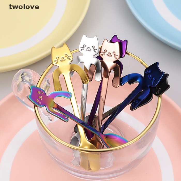 - BAYAR DIRUMAH Stainless Steel Cartoon Cat Hanging Cup Coffee Spoon Ice Cream - Peralatan Kamar Tidur Murah LIMITED
