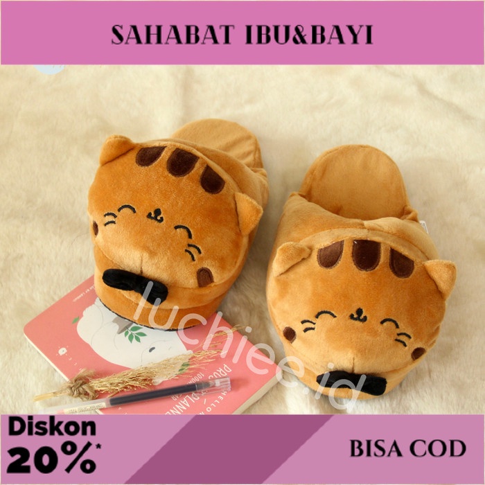 - PROMO SANDAL KAMAR TIDUR/RUMAH/INDOOR BONEKA CAT KUCING ANAK DEWASA LUCU SNI - Cokelat GRATIS ONGKIR