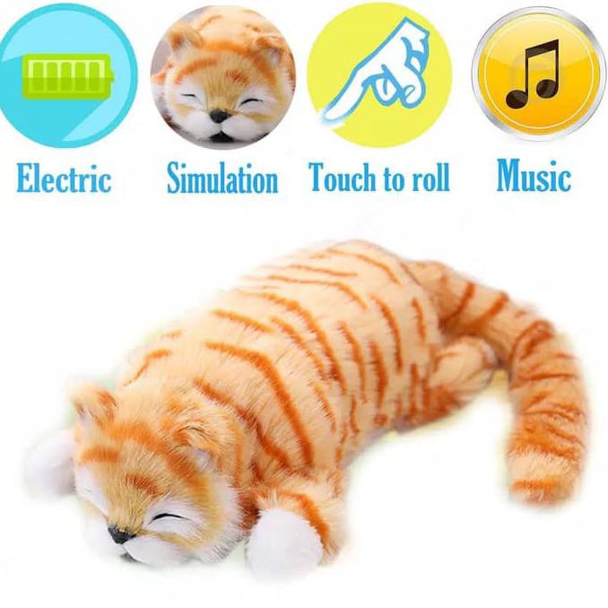 - 14.84Ftgrdujh- Mainan Anak Kucing/Electric Cat Lucu Yg Bisa Guling & Ada Suara Ketawa - Cokelat