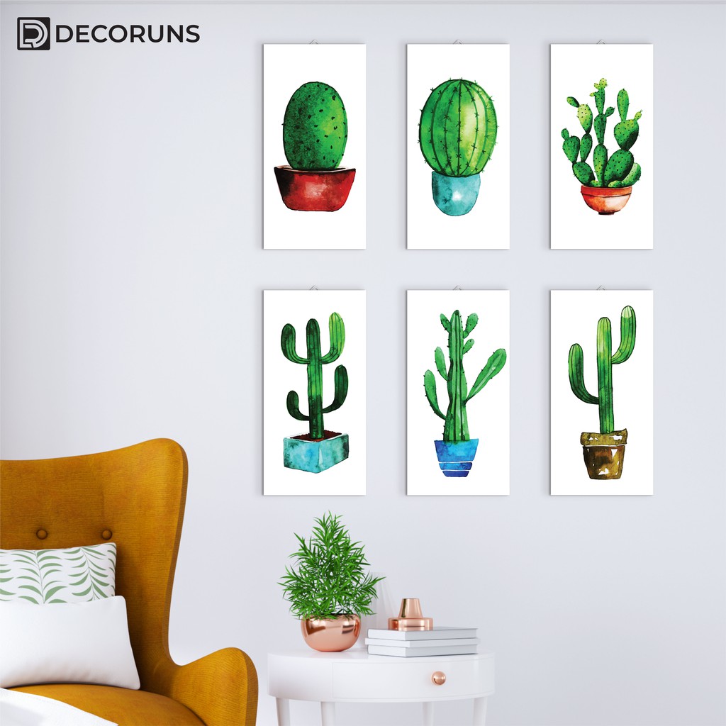 - Decoruns Hiasan Dinding Kamar Dekorasi Rumah Pajangan Tanaman Kaktus Hijau Watercolor 15x30cm