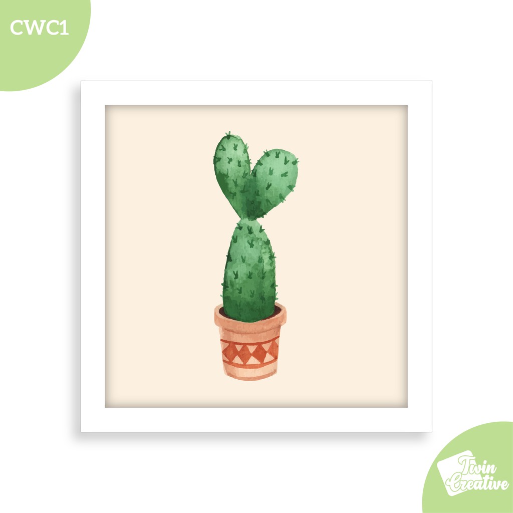 - Twindigital Custom Hiasan Dinding Kayu Dekorasi Kamar Rumah Tema Cactus Water Color - Papan MDF 20x20 cm