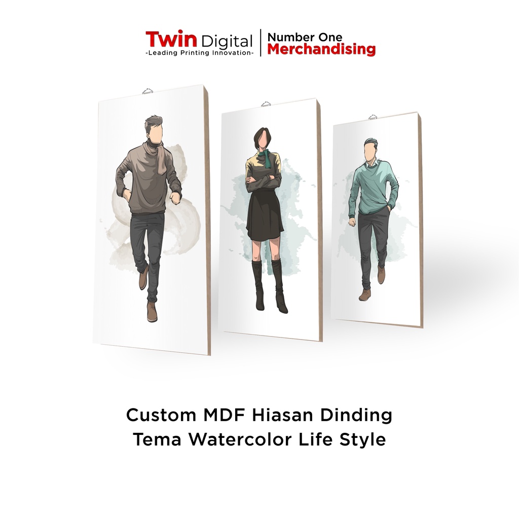 - Twindigital Custom Hiasan Dinding Kayu Dekorasi Kamar Rumah Tema Watercolor Lifestyle - Papan MDF 10x20 cm