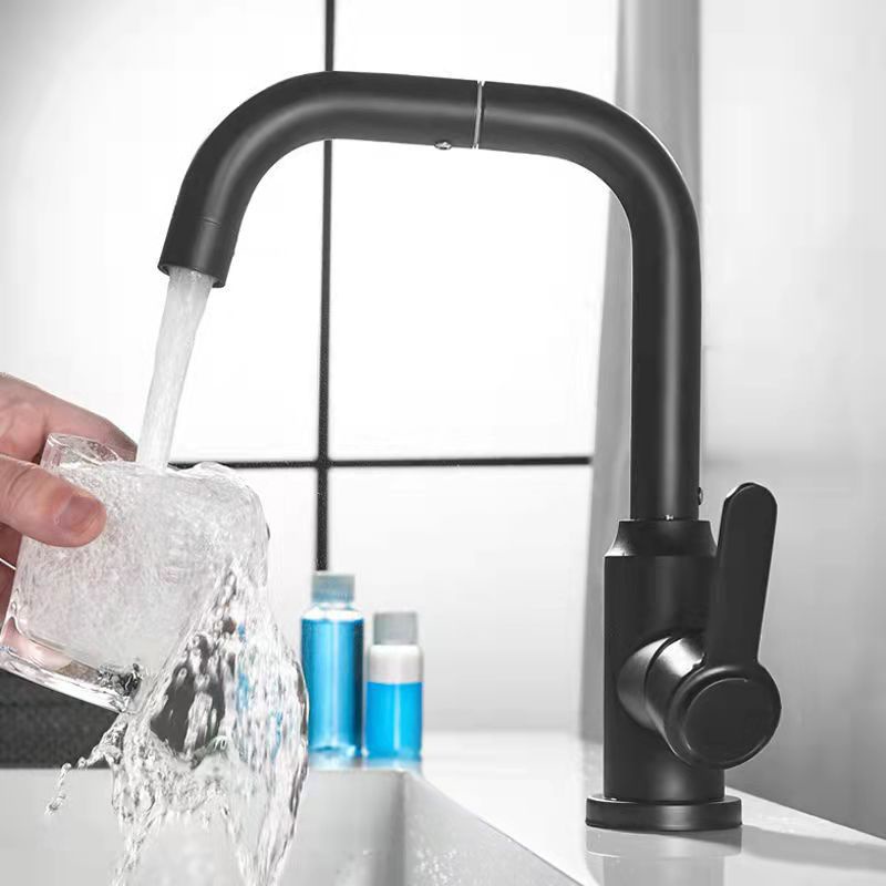- Cat Hitam 360 Derajat Bahan Stainless Steel ° Keran Air Panas / Dingin Model Putar Ganda Untuk Kamar Mandi