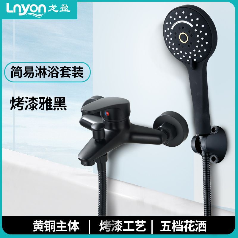 - Penjualan Langsung Kuningan Elegan Cat Hitam Sederhana Shower Set Hitam Shower Lift Rod Multi-Fungsi Handheld Shower