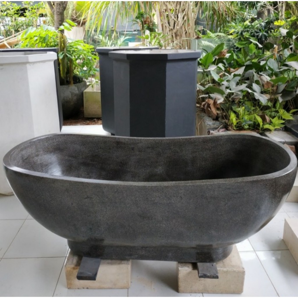 - Bathtub Terrazo Minimalis Cat Hitam Finishing Glossy dengan P 130cm
